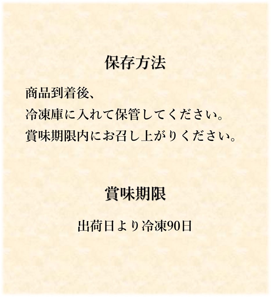 | 賞味期限 | 出荷日より冷凍90日 |