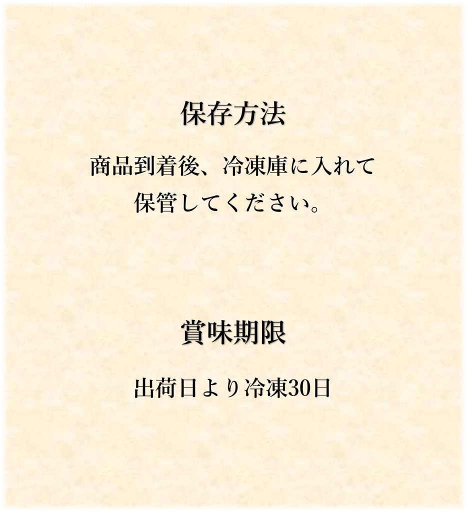 | 賞味期限 | 出荷日より冷凍30日 |